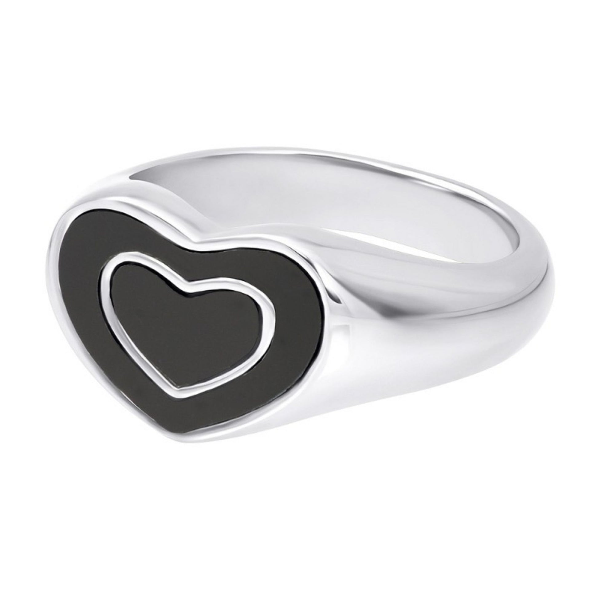 De Amor Black Ring is een stijlvolle en moderne ring met een hartvormig design en een diepe zwarte afwerking. Deze ring straalt kracht en elegantie uit en is perfect om solo te dragen of te combineren met andere sieraden voor een unieke look.