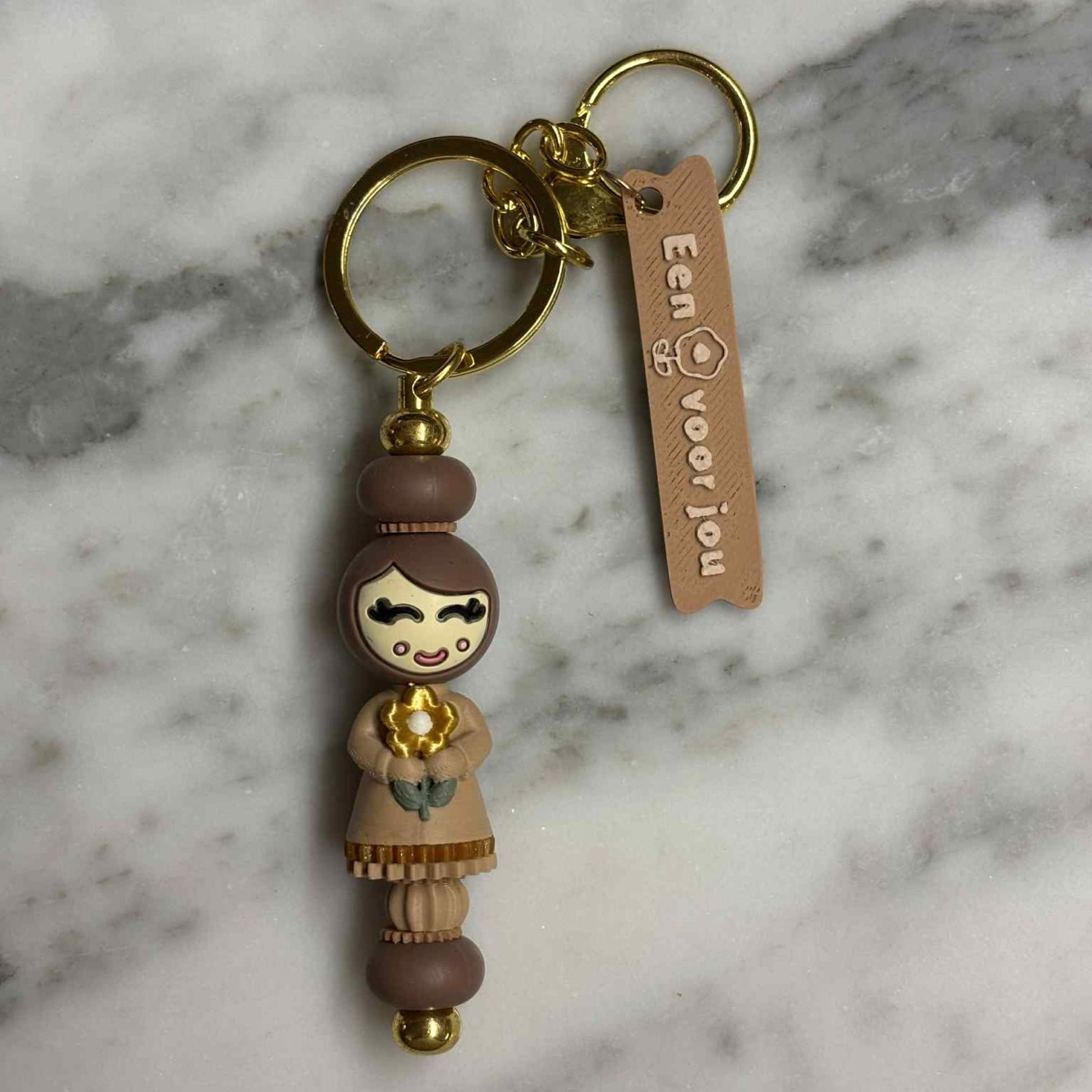 Ons bloem-gelukspopje sleutelhanger is het perfecte cadeautje om iemand nét dat beetje extra geluk en vrolijkheid toe te wensen. Het schattige gelukspopje draagt een klein bloempje bij zich – een symbool voor groei, positiviteit en mooie dingen die op je pad komen.