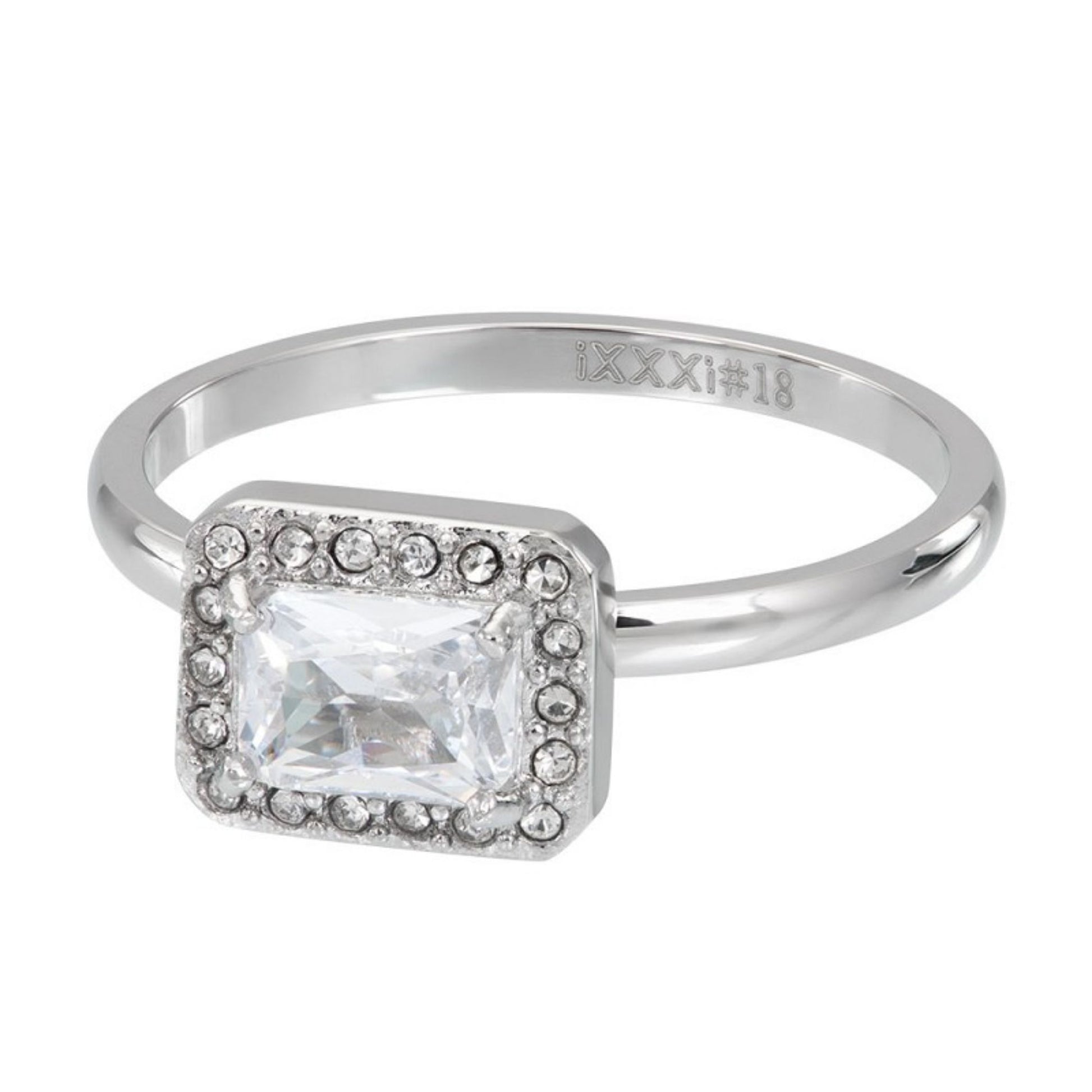 Een elegante en luxueuze ring met een rechthoekige steen, omringd door een fonkelende halo van kleine steentjes. Deze tijdloze beauty straalt klasse en verfijning uit, perfect voor speciale gelegenheden of als statement piece.