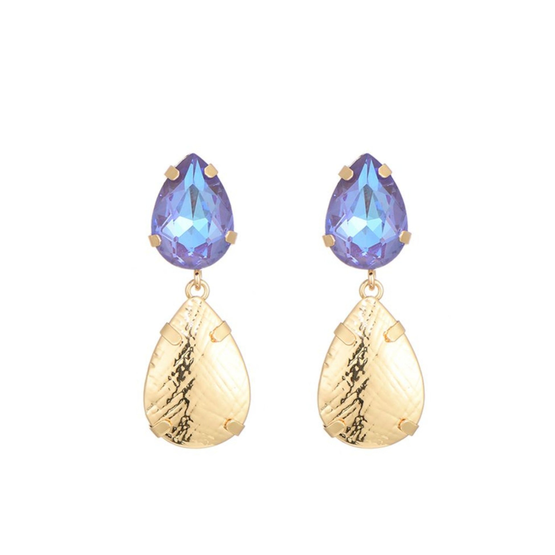 Deze elegante oorbellen stralen dankzij het blauw/paars kristal dat prachtig speelt met het licht. Gecombineerd met de gouden druppelvorm geven ze een luxueuze, unieke look. Ideaal voor een feestelijke outfit of om jouw look dat tikkeltje extra te geven.
