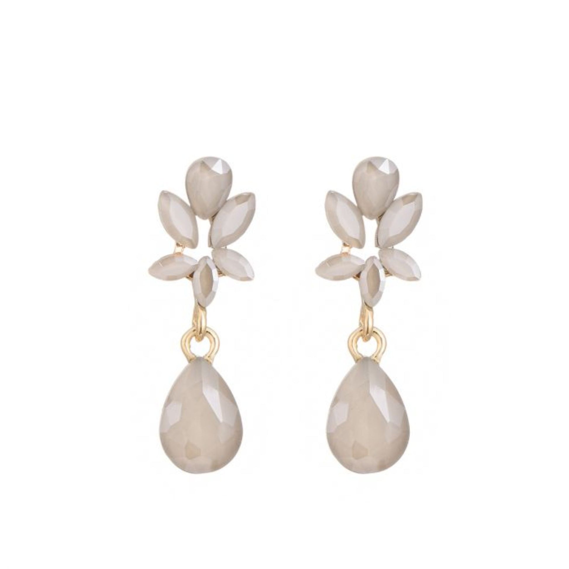 De Flower & Drop medium beige oorbellen stralen zachte elegantie uit met hun subtiele bloemenmotief en glanzende druppelhanger. De warme beige tint in combinatie met goudkleurige accenten maakt deze oorbellen perfect voor zowel een casual chique outfit als een feestelijke gelegenheid.