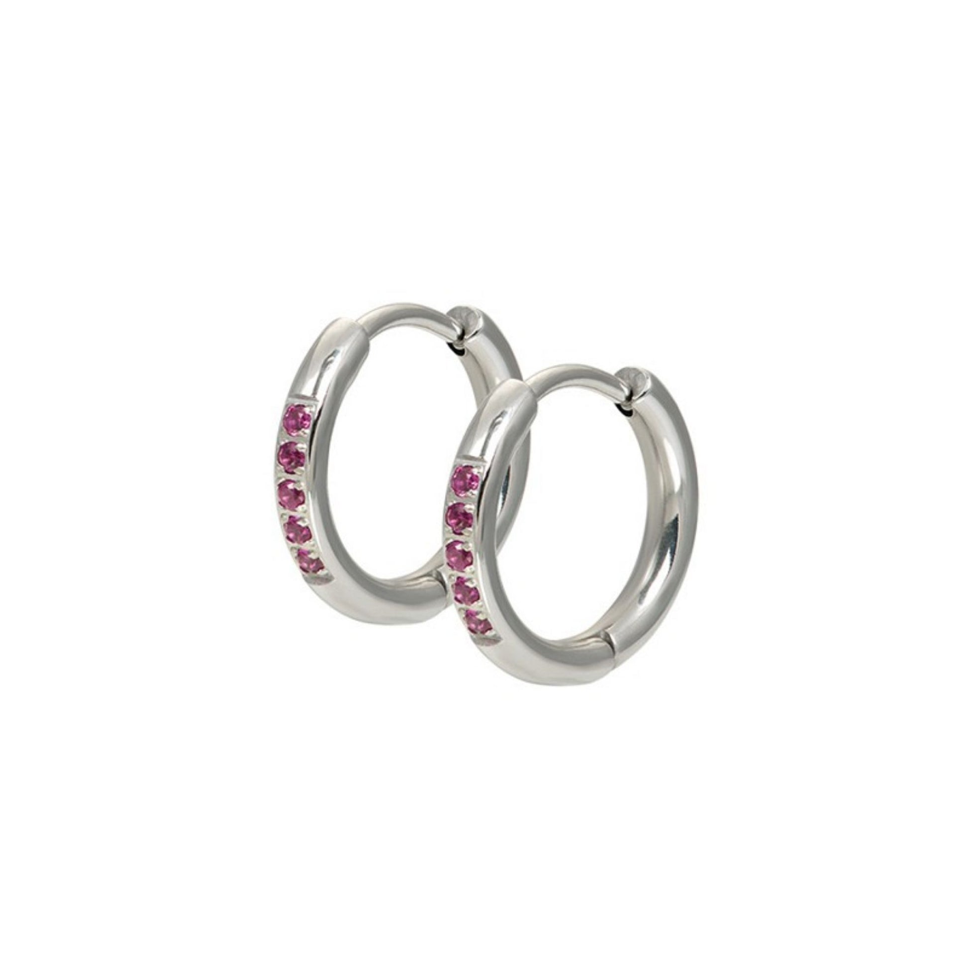 De Fuchsia Hoops zijn stijlvolle oorringen met een prachtige rij fuchsia zirconia steentjes. De heldere kleur geeft een speelse, maar elegante uitstraling die elke outfit een extra touch geeft. Draag ze solo of combineer ze met onze oorbedeltjes voor een persoonlijke look.