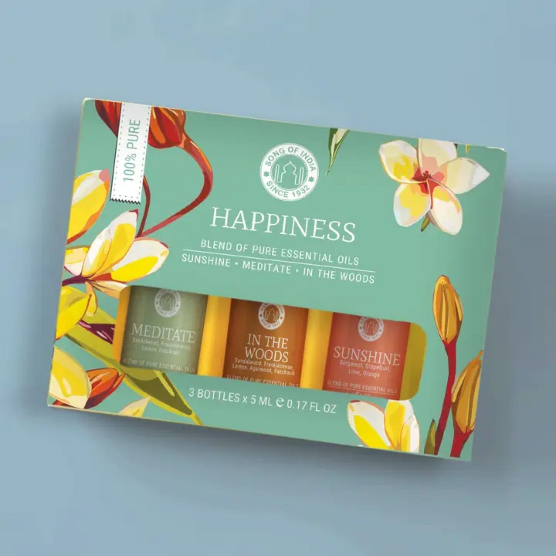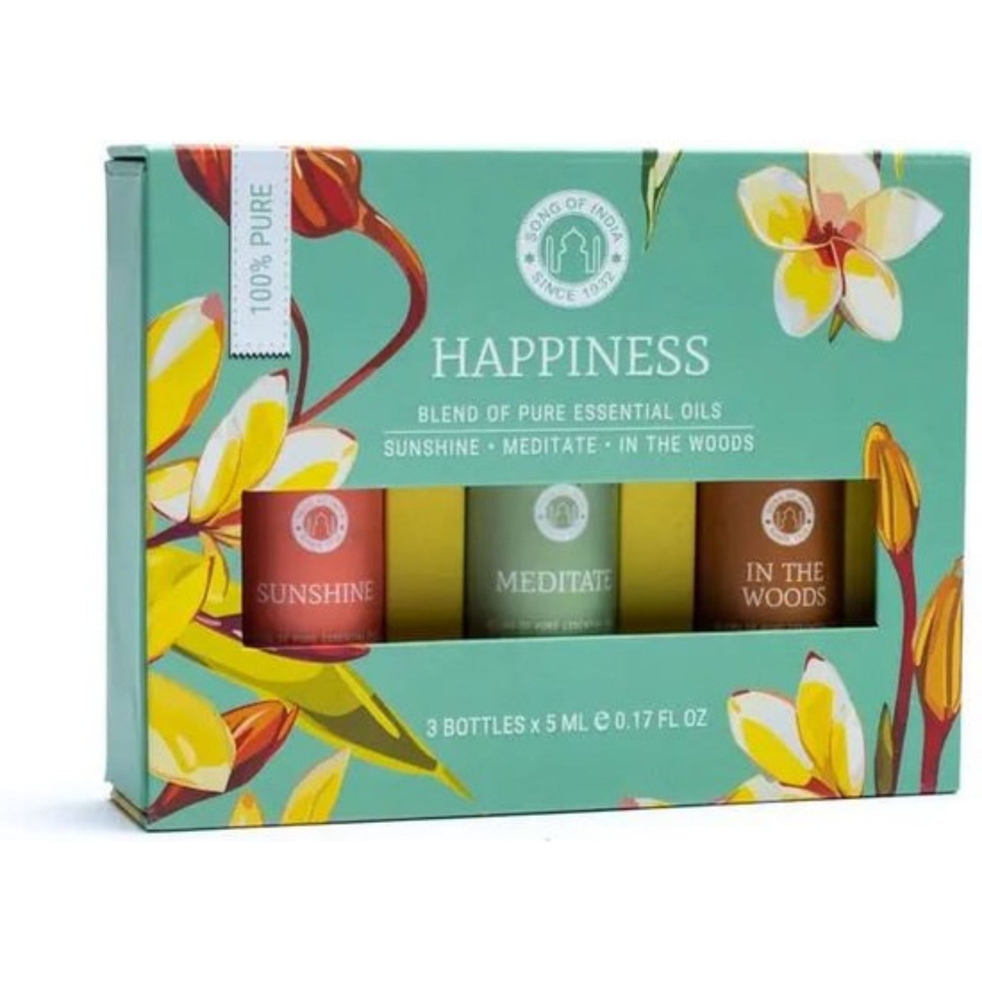 Laat je omhullen door de warme en opbeurende energie van de Happiness collectie van Song of India. Deze drie unieke essentiële oliemengsels zijn speciaal samengesteld om gevoelens van vreugde, positiviteit en innerlijke rust te versterken. De frisse en exotische aroma’s kalmeren je zenuwen, verzachten spanning en brengen je geest naar een staat van pure gelukzaligheid. Ideaal voor aromatherapie, meditatie of voor een vrolijke, uplifting sfeer in huis.