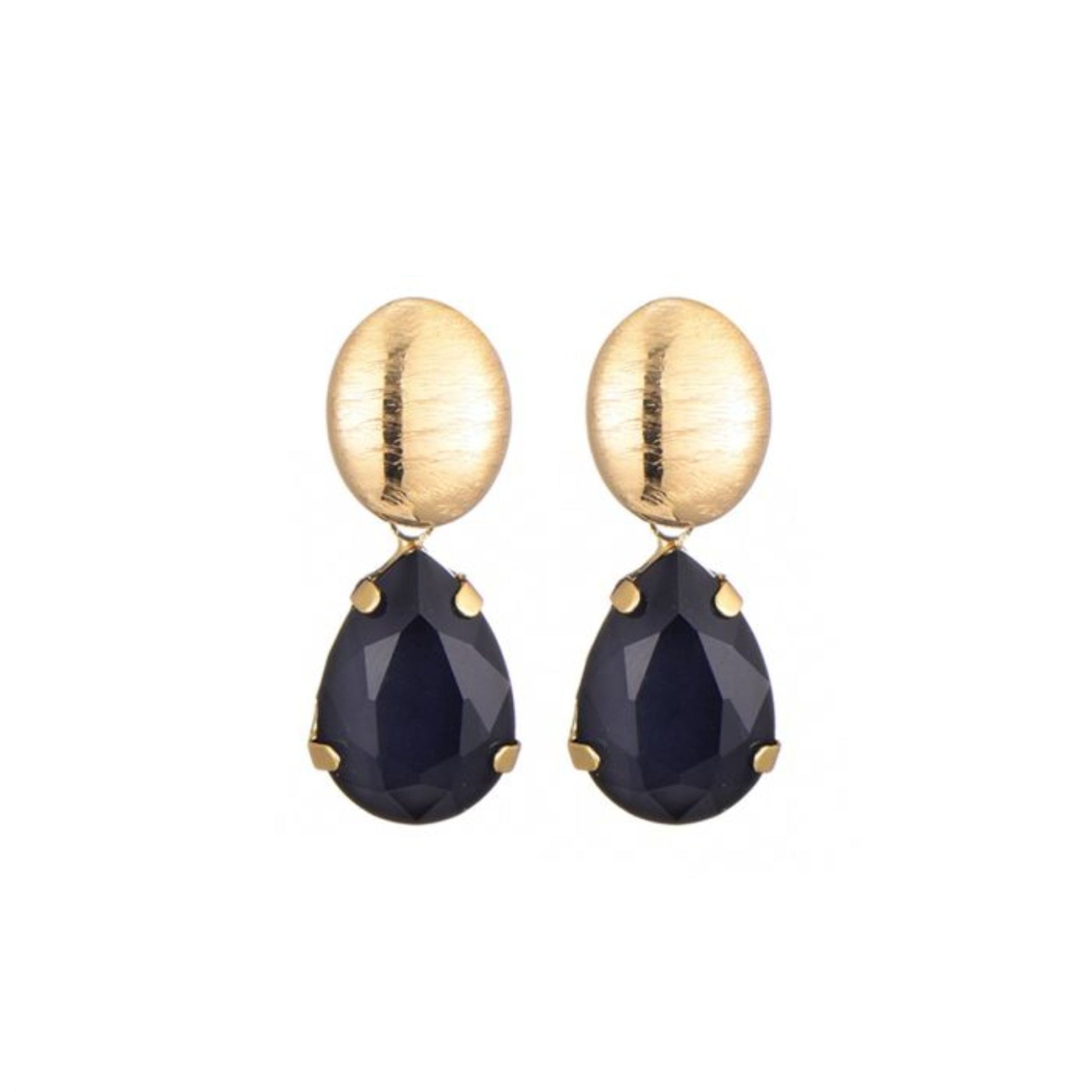 De Gold Drop Crystal Mini oorbellen in zwart zijn een echte klassieker. Het goudkleurige bovenstuk en de fonkelende zwarte druppel creëren een tijdloze, chique look die zowel bij een avondjurk als bij een casual outfit past.