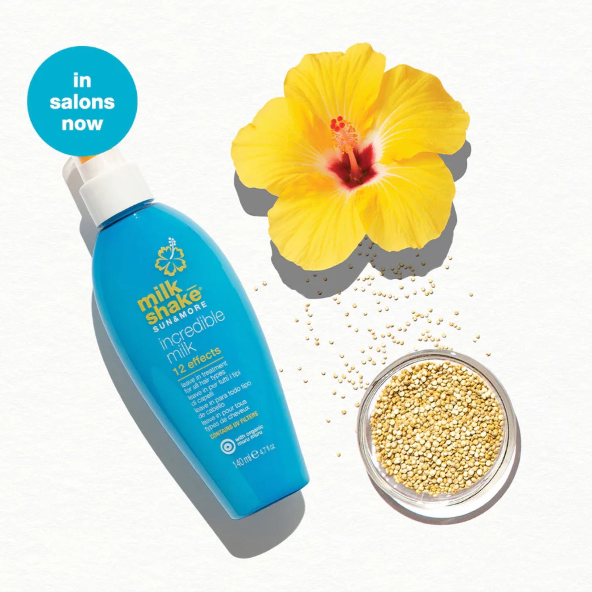 Milk_Shake Sun & More incredible milk 140ml een spray mask met 12 elementen die alle noodzakelijk zijn tijdens de zomer om het haar te beschermen. Voor elk haartype.