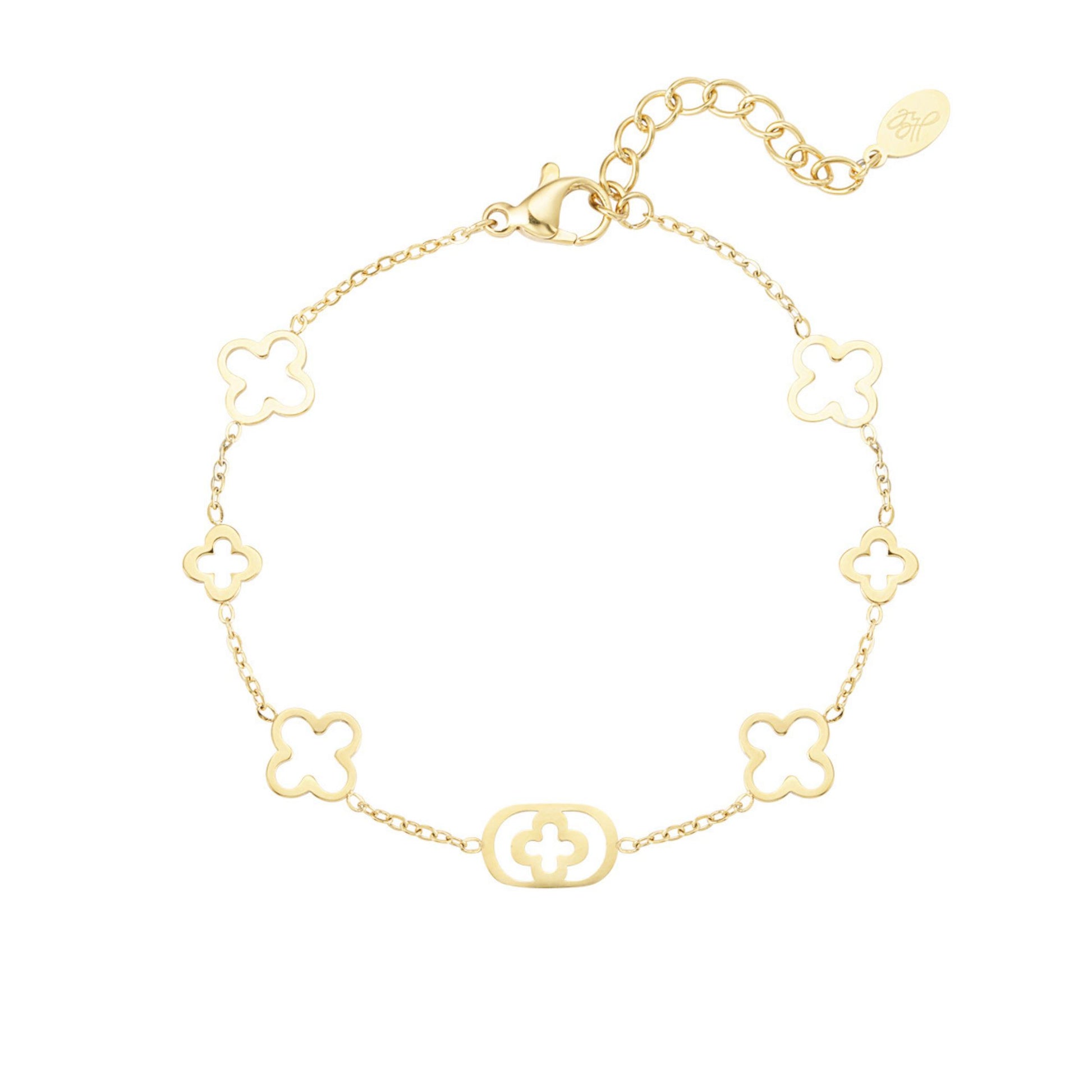 De Klassieke Klaver armband straalt tijdloze elegantie uit met een verfijnd ontwerp van sierlijke klavertjesvier. De subtiele schakels en afwisseling van open en gesloten klavervormen zorgen voor een speels en stijlvol karakter. Deze armband is perfect om solo te dragen voor een minimalistische look of te combineren met andere sieraden voor een gelaagd effect. Dankzij de verstelbare sluiting past hij moeiteloos om elke pols. Verkrijgbaar in zowel goud- als zilverkleurig edelstaal.