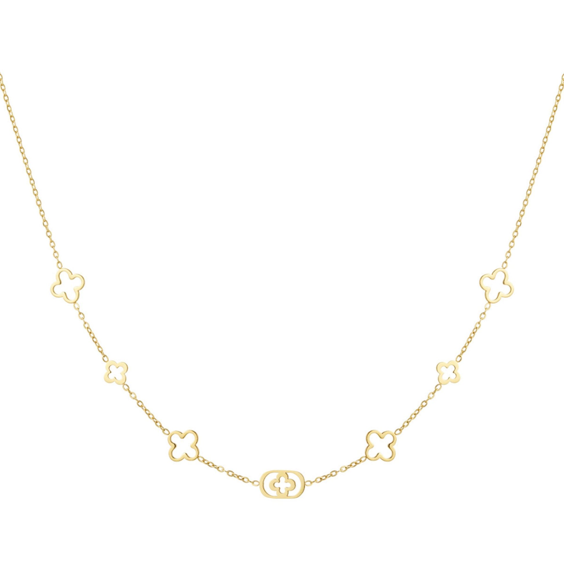 De Klassieke Klaver ketting straalt tijdloze elegantie uit met een verfijnd ontwerp van sierlijke klavertjesvier. De subtiele schakels en afwisselende klaverpatronen geven deze ketting een speels en stijlvol karakter. Dit sieraad is perfect voor elke gelegenheid – of je het nu solo draagt voor een minimalistische look of combineert met andere sieraden voor een gelaagd effect. Verkrijgbaar in zowel goud- als zilverkleurig edelstaal.