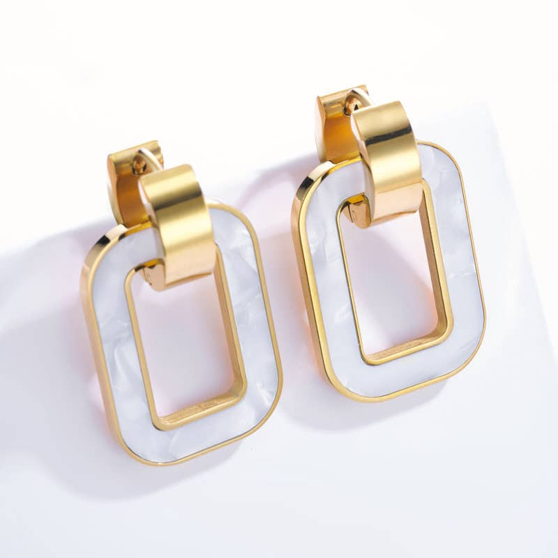De Livia oorbellen zijn een perfecte mix van modern en elegant. Het rechthoekige ontwerp met goudkleurige accenten en een parelmoer afwerking geeft een verfijnde en trendy uitstraling. Lichtgewicht en comfortabel, deze oorbellen zijn ideaal voor zowel een casual look als een chique avond. Een stijlvolle must-have voor elke sieradencollectie!
