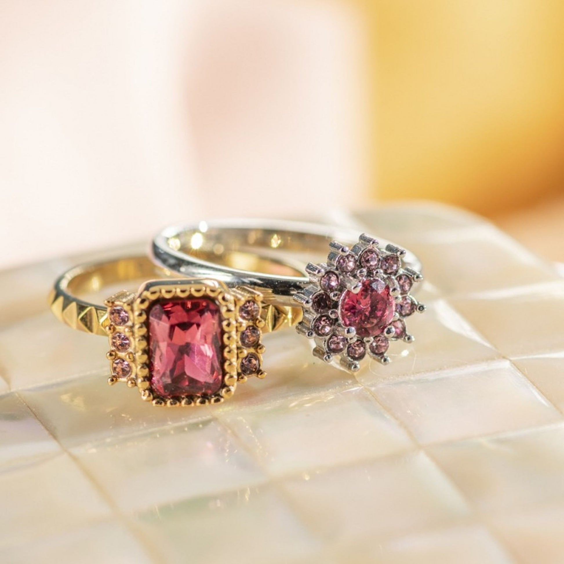 De Lucia Small Fuchsia Ring is een sprankelende eyecatcher met een fuchsia-kleurige zirconia steen, omringd door fijne roze steentjes. De zilveren afwerking geeft de ring een elegante en tijdloze uitstraling.