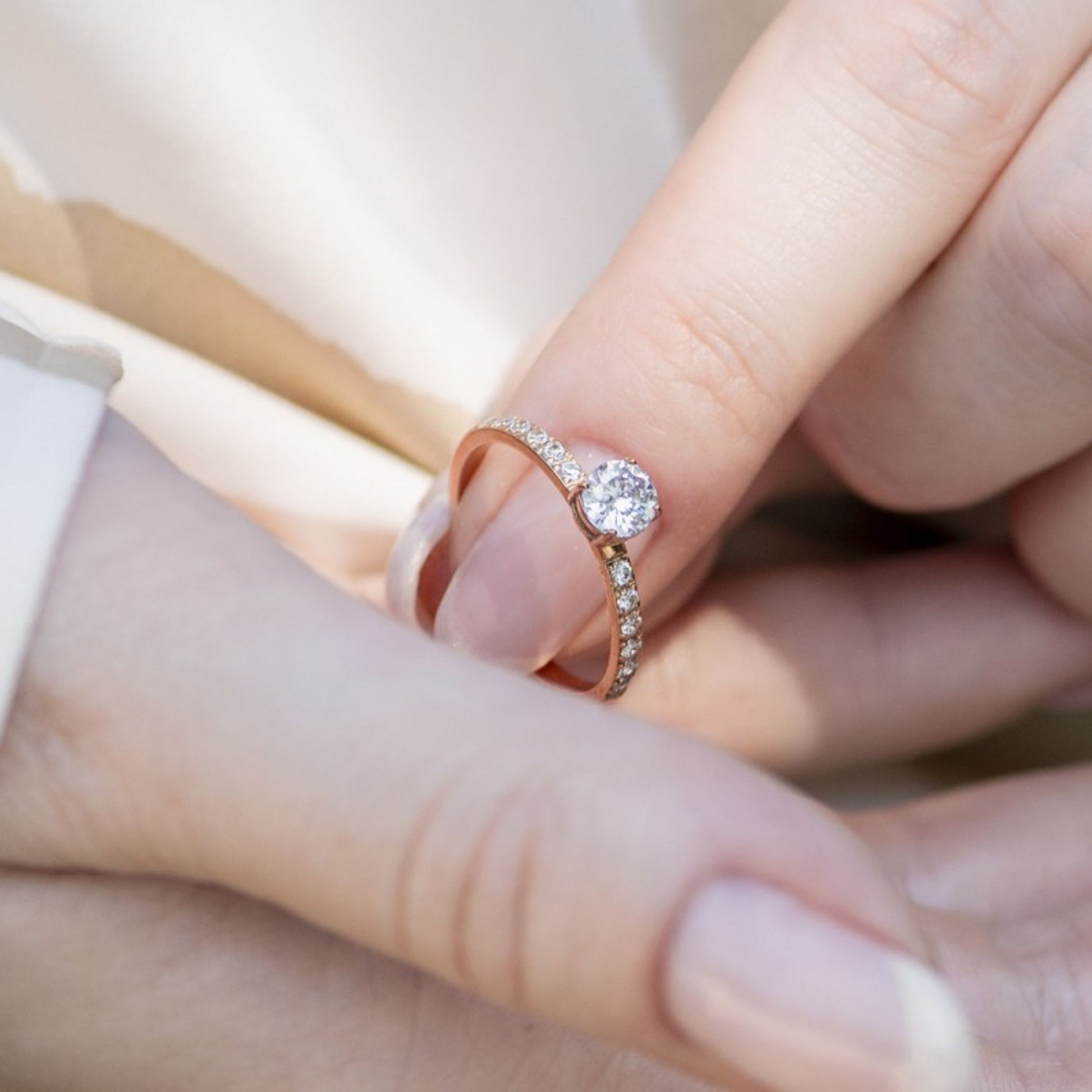 Een elegante en luxueuze ring met een schitterende solitaire steen en subtiele steentjes op de band voor een extra fonkelende uitstraling. Perfect als statement ring of als tijdloos sieraad voor speciale gelegenheden.