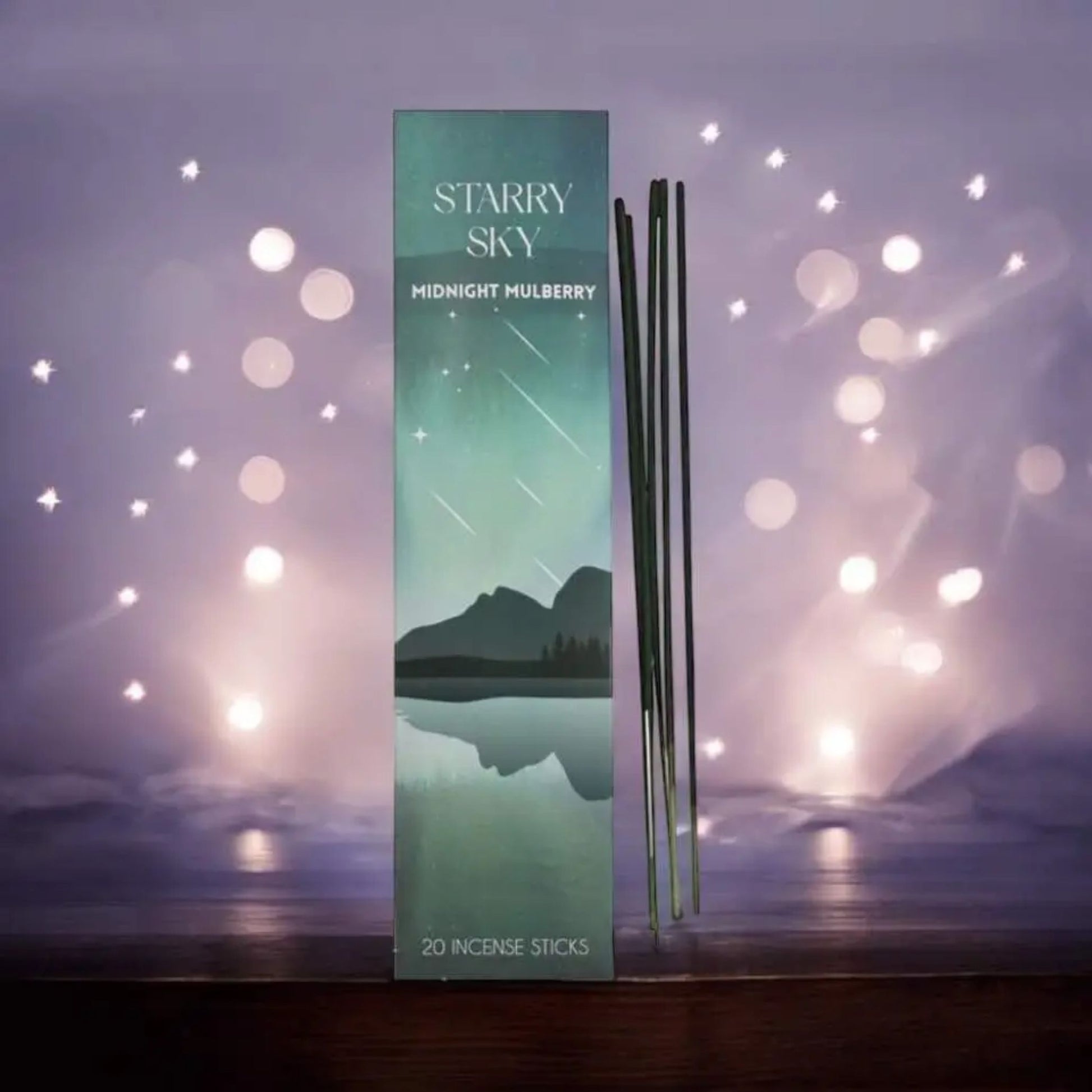 Laat je zintuigen verwennen door de mysterieuze en fruitige geur van Starry Sky. Deze handgerolde wierookstokjes verspreiden het rijke, zoet-donkere aroma van Midnight Mull Berry, een geur die doet denken aan rijpe bessen met een vleugje nachtelijke magie. Perfect om een gezellige, ontspannende sfeer te creëren of om je ruimte te vullen met een warme, dromerige gloed.