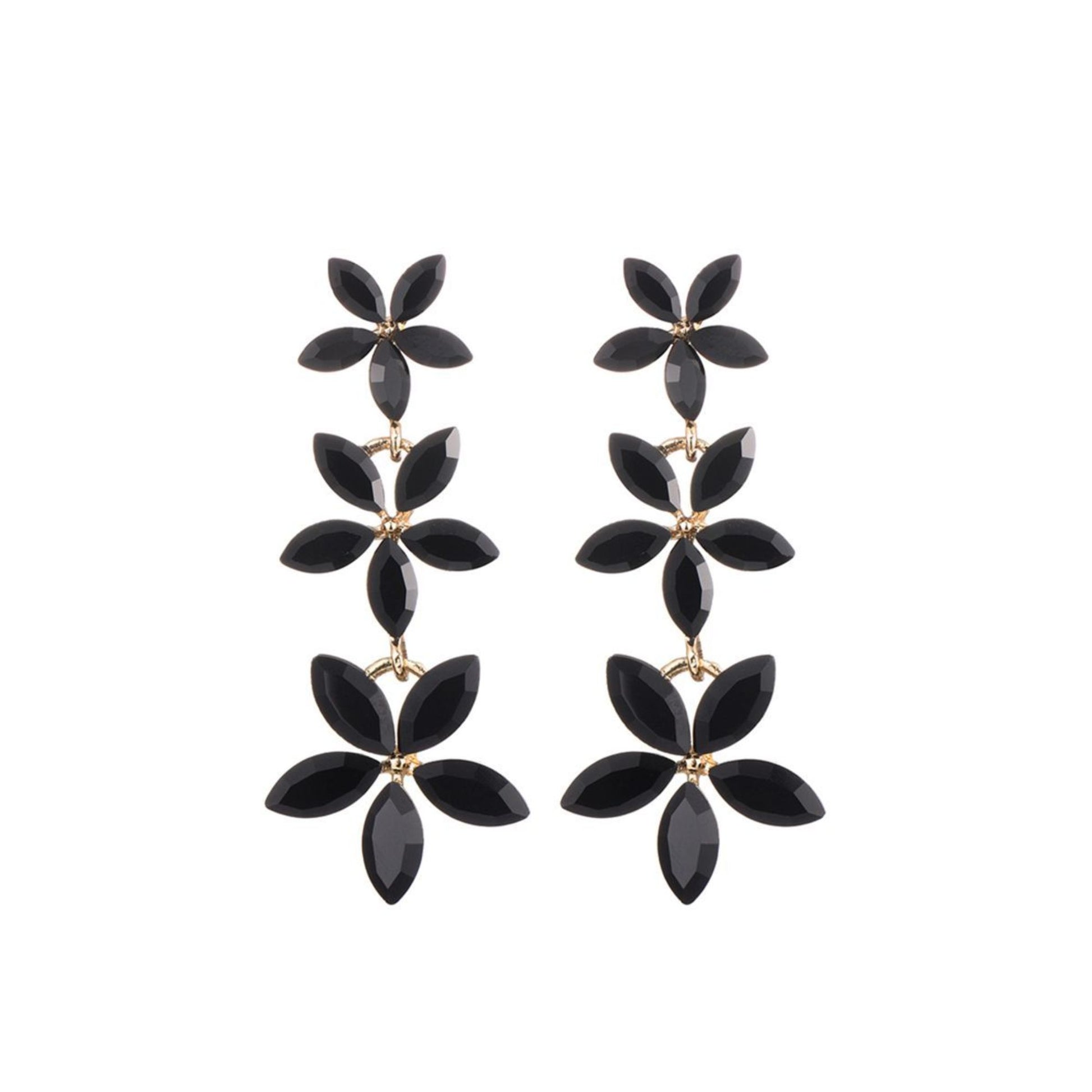 De Triple Flower zwart oorbellen combineren drie glanzende bloemen met subtiele goudkleurige details voor een klassieke en chique look. De diepe zwarte kristallen maken deze oorbellen ideaal voor een avondje uit of een elegante finishing touch bij je outfit.