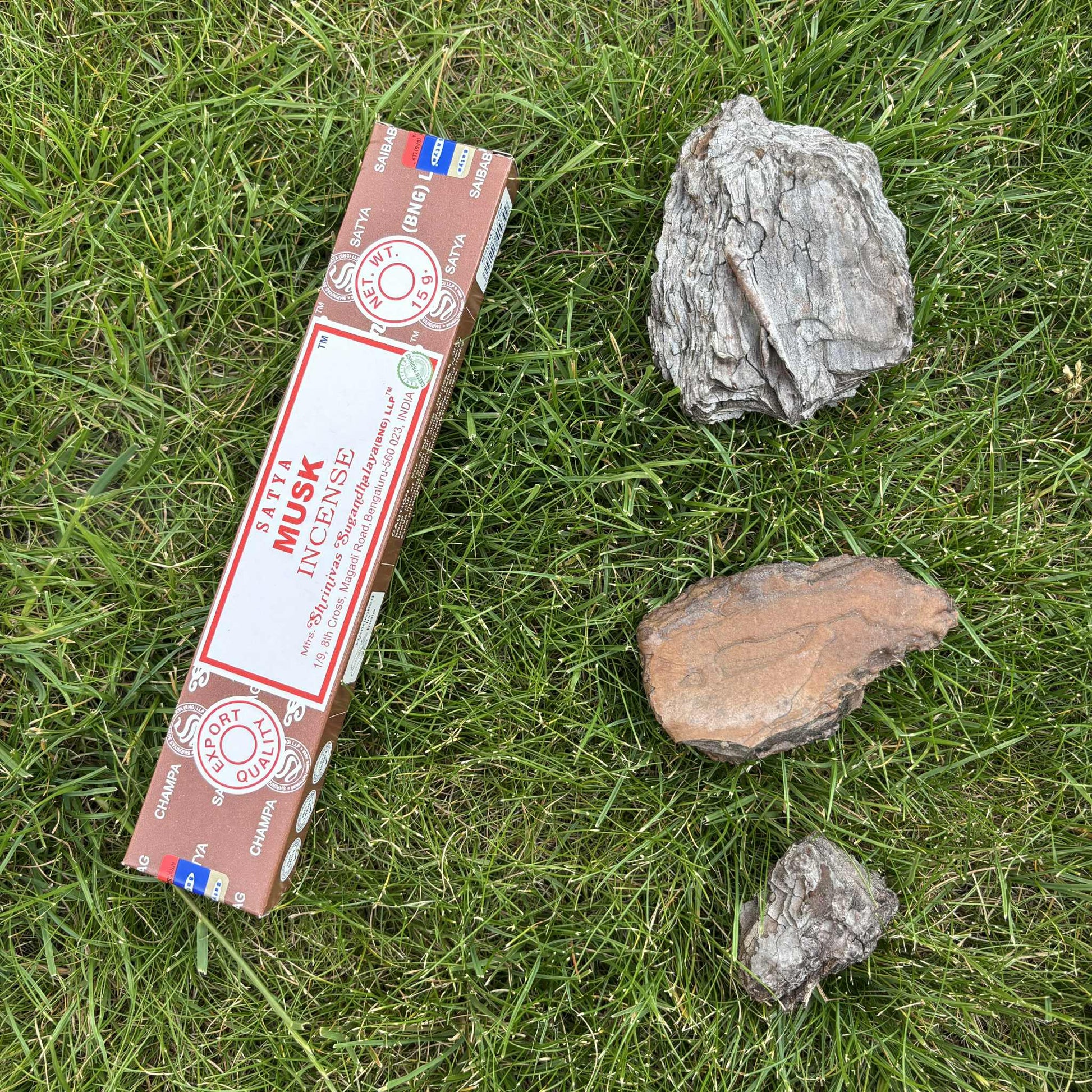 Satya Musk wierook heeft een diepe, aardse en licht zoete geur die rust, sensualiteit en spirituele verdieping oproept.