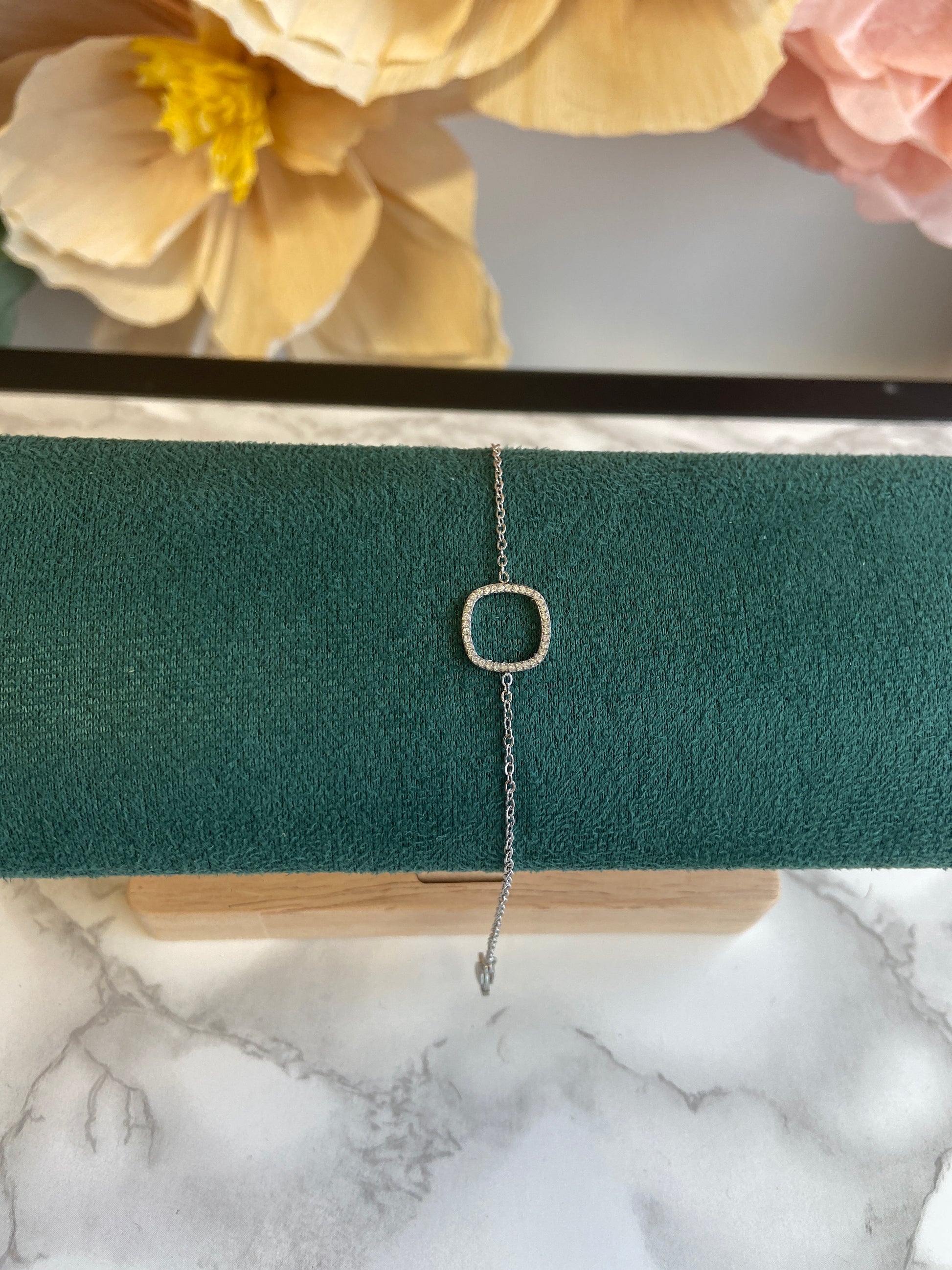 zirconia square loop zilver armband